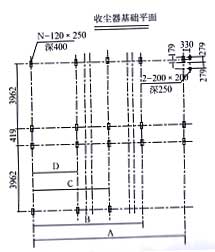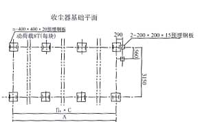 3、設(shè)備外形及基礎(chǔ)(見附圖),我公司還可根據(jù)用戶場地情況設(shè)計符合用戶要求外形的除塵器。